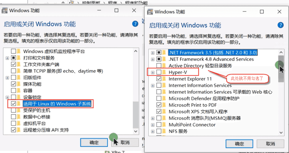 在 cmd 命令下按提示操作进行安装适用于 Linux 的 windows 子系统即 WSL 软件;安装了WSL软件就不需要安装Hyper-V组件了。
