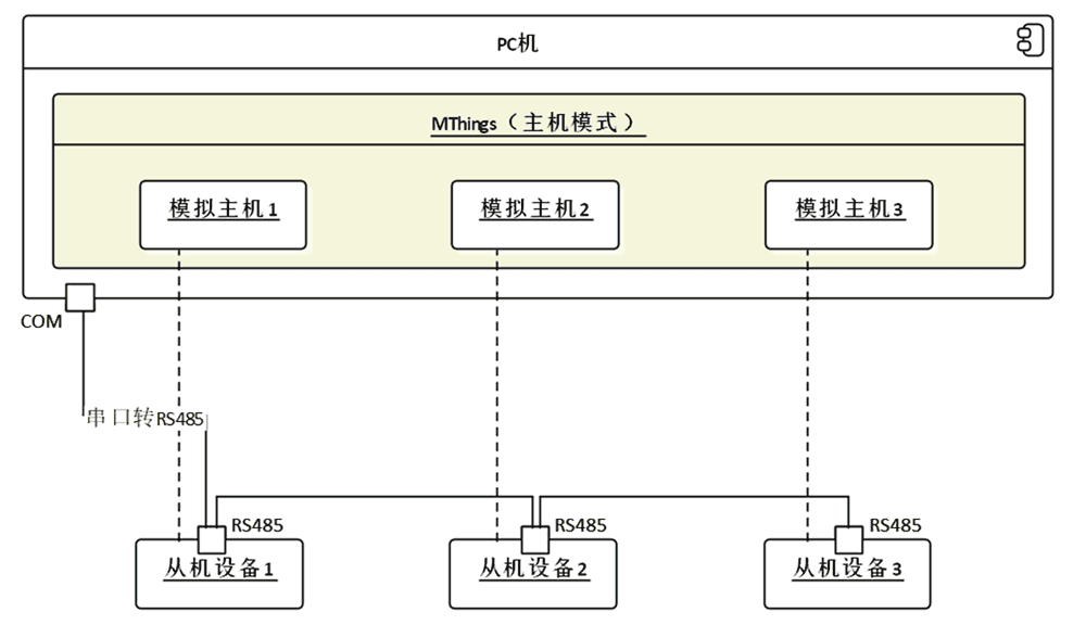 模拟主机设备:软件作为主机接入多个从机设备时,用户需要在软件中给每一个从机设备创建一个对应的模拟主机,不同的模拟主机通过设备地址区分。
