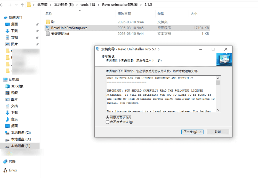 1. 运行 RevoUninProSetup.exe 安装程序,按提示进行安装