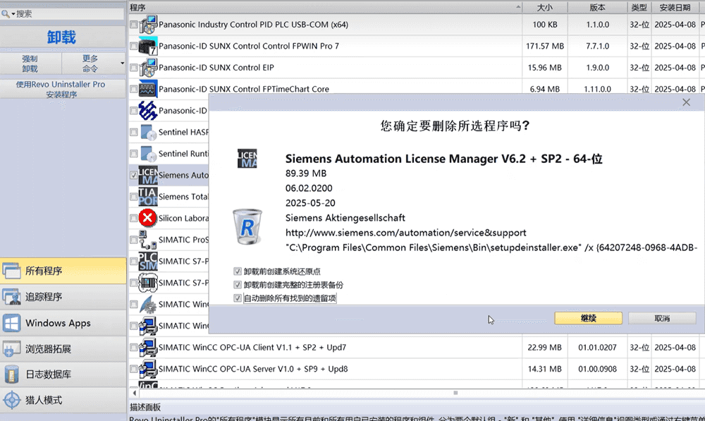 卸载博图类的工控大软件也是一样的方法,带有西门子logo的都卸载掉;以前也卸载博图软件试过,也卸载不干净,也试过很多办法,最后只能重装系统来解决,如果电脑上已经有很多的软件了,重装系统很麻烦的。