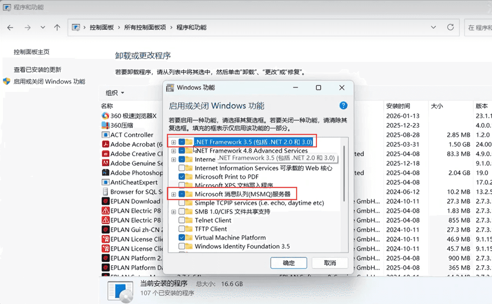 首先需要安装windows插件;需要安装Net Framework3.5和MSMQ服务器;