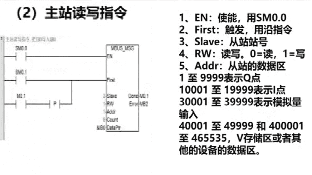 注:RW:如果是1是主站向从站写数据;如果是0是主站读从站的数据,读和写都是主站的动作;Addr:是从站的代码; DataPtr:是主站的数据区,前面需要加&符号;