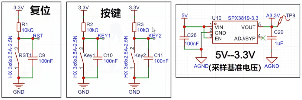 5V转3.3V的采样基准电压和按键及复位电路