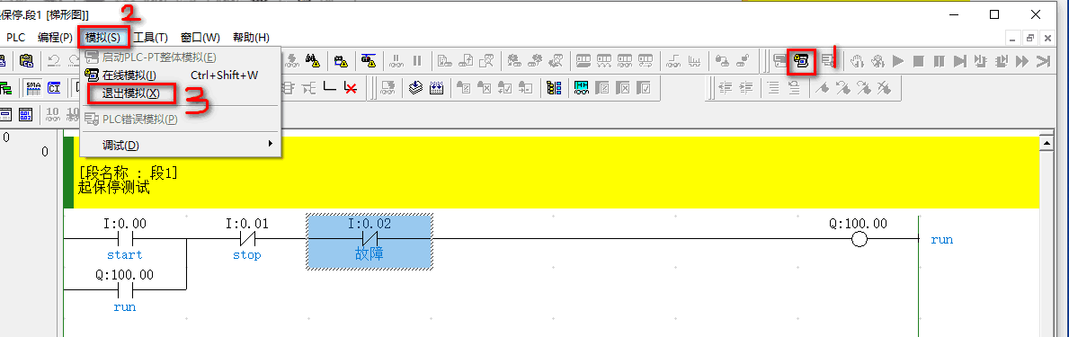 当我们使用模拟功能时,可以观察程序段的运行步骤。使用完毕后关闭模拟。
