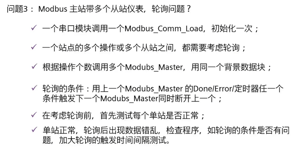 Modbus主站功能块的调用。如果地址不够用了超过了255则将Extend_Addressing=1就可以扩展到65535了。