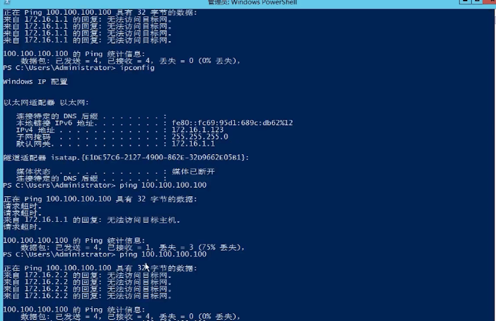 在CMD命令中ping 目标地址,提示传输失败,常见故障,一般是本机winserver没有配置网关。