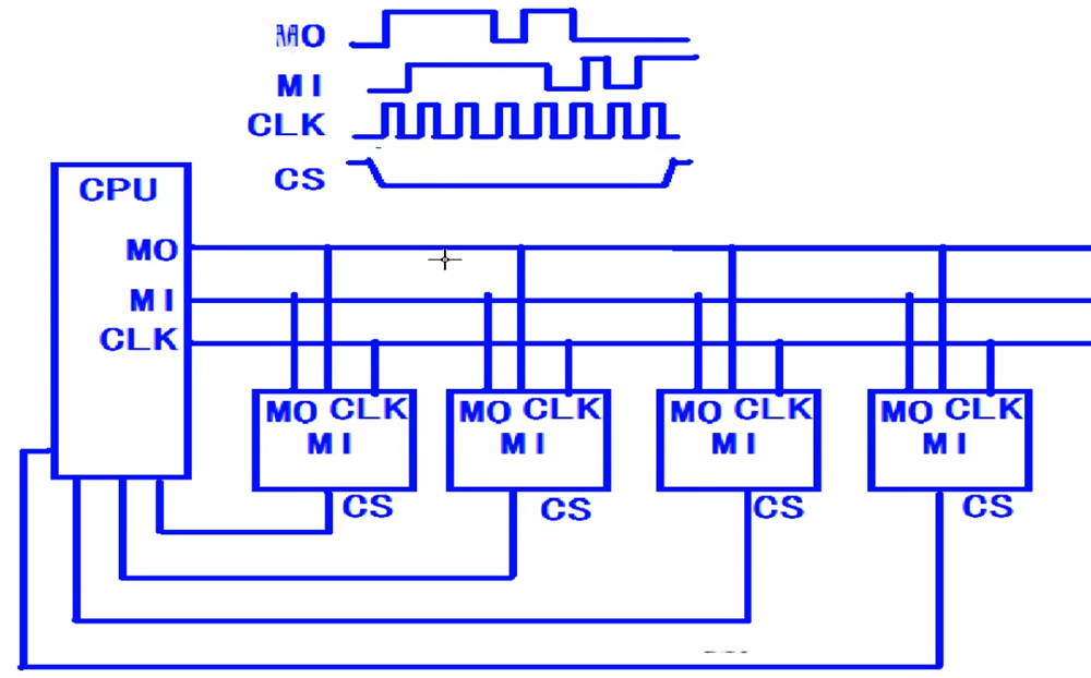 SPI通讯芯片之间的内部通讯,是主从通讯模式,有片选信号、有公共时钟信号。