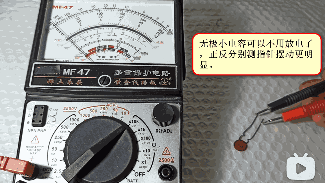 万用表测电容方法及好坏漏电等判断 数字表电容档位测不了电容的短路,漏电也测不了。 指针表对电容的测量; 电容的击穿与漏电测量 无极小电容可以不用放电测,这样摆动更明显。只能测击穿和漏电。 打赏赞分享 万用表 转载请注明出处: https://www.cntworld.cn 智能工控 » 万用表测电容方法及好坏漏电等判断