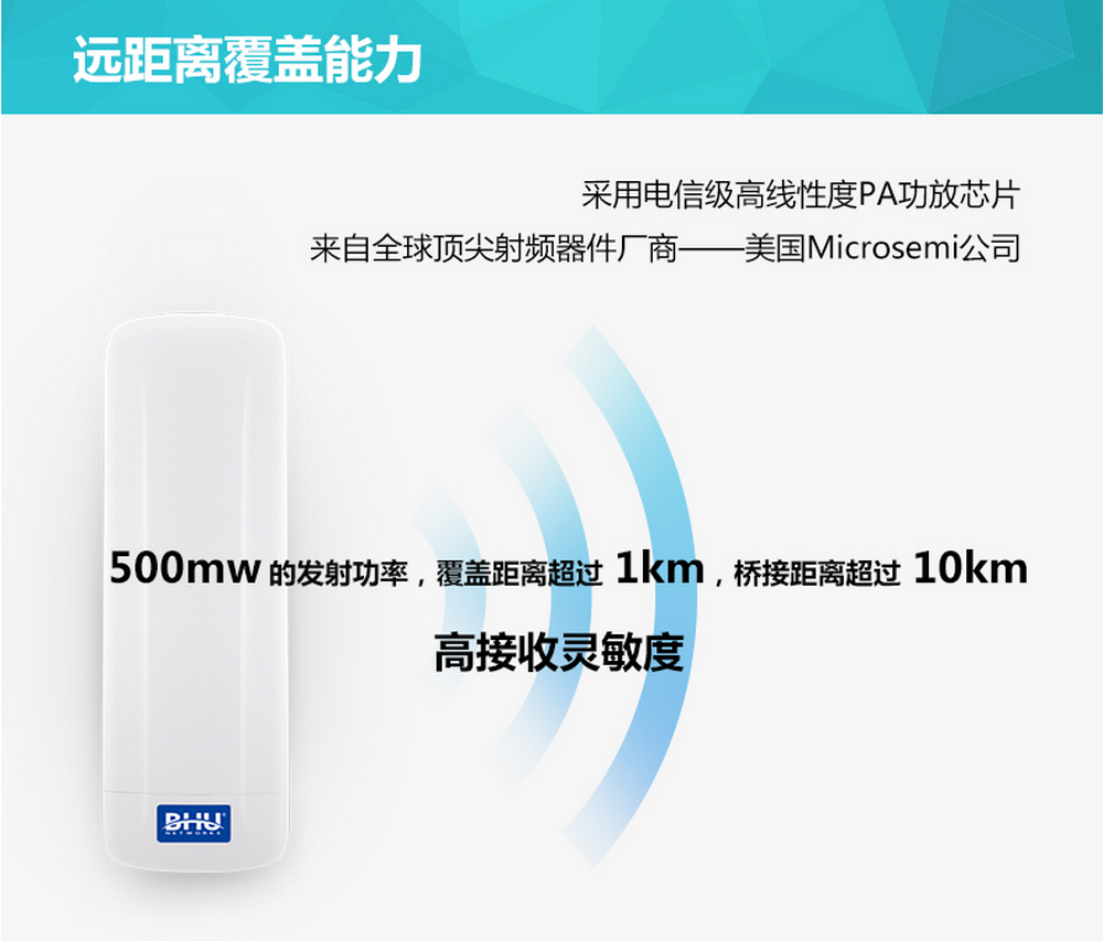 采用进口的高通Atheros专业芯片,每台设备出厂前都经过专业设备测试。